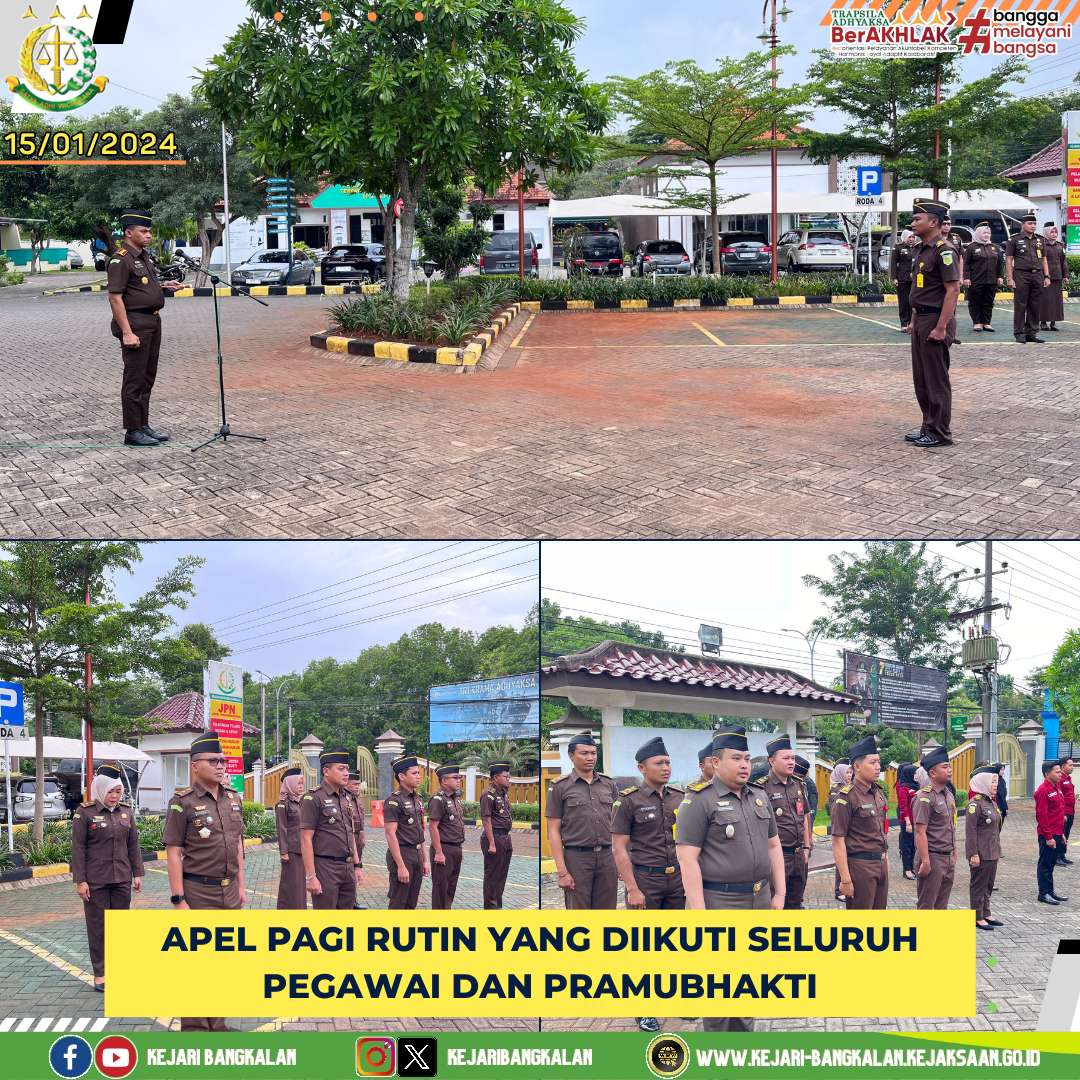 Senin, 15 Januari 2024 Kepala Kejaksaan Negeri Bangkalan Dr. Fahmi, S.H., M.H. memimpin Apel Pagi rutin yang diikuti oleh semua pegawai dan pramubhakti.